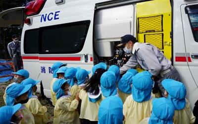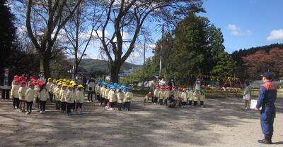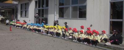 そして、再び放送が流れ「火災が発生~。すぐに園庭鉄棒前に避難しなさい。」。