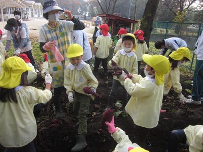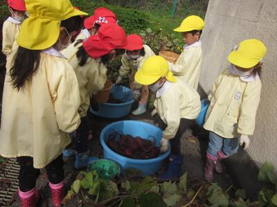 この日は年長組で行ったさつまいもほりも一緒に体験。