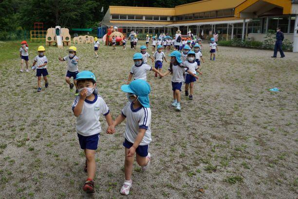 子どもたちは、今回も「おさないしらない、しゃべらない、もどらない、ちかづかない」を心がけ、所定の場所に避難。