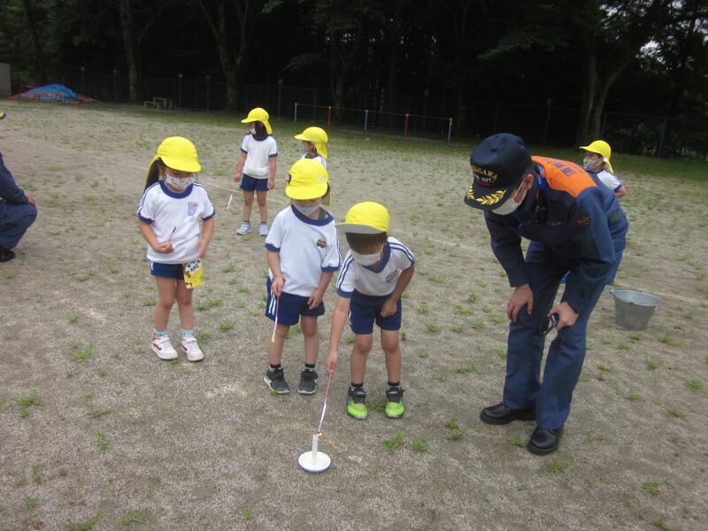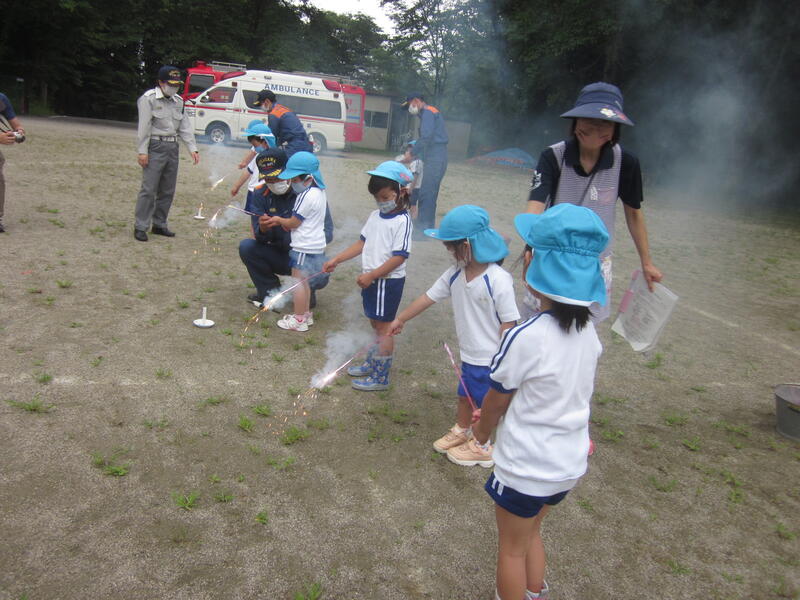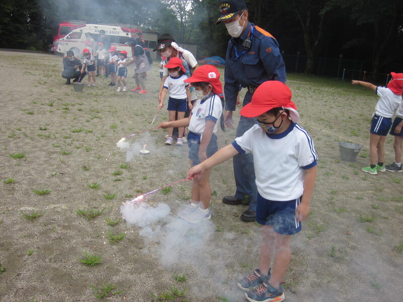 今回のねらいは、通報訓練と避難訓練の仕方をチェックと花火遊びをする際の注意点を学ぶでした。