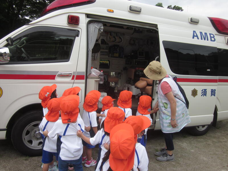全体会終了後、救急車と消防車を見させていただいて、さらに感激。