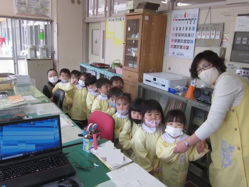 昨日、年少組が担任引率で職員室を訪問。
