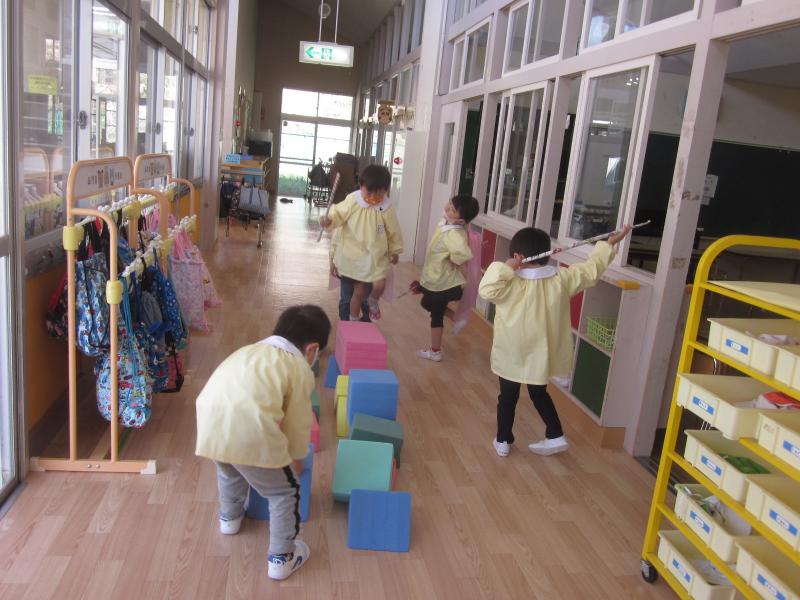 教室で、廊下で、テラスで、楽しく遊んでいます。