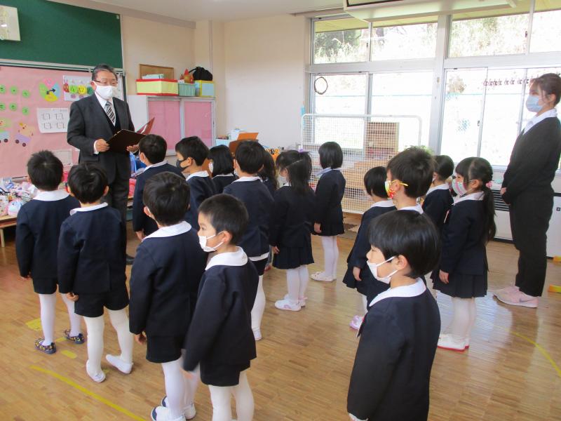 本日、登園後、年長組、年中組の各教室で進級式を行いました。