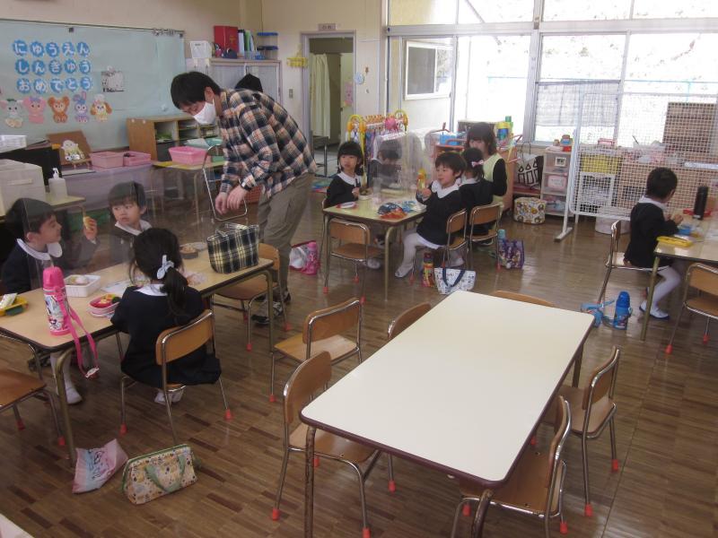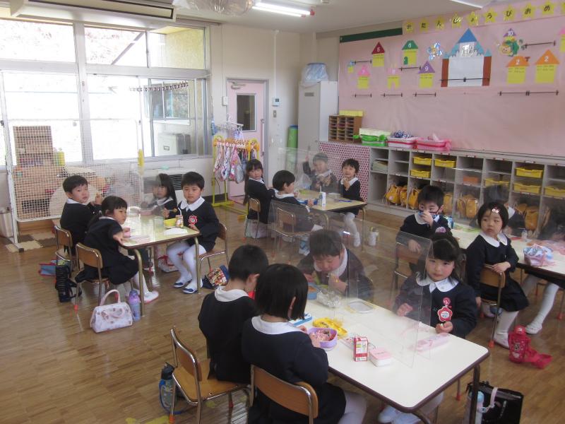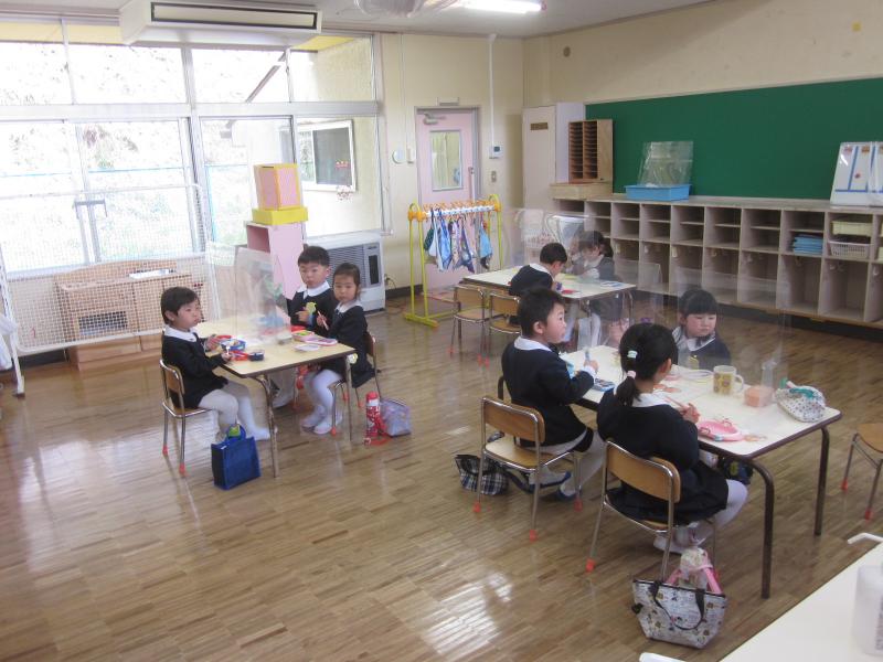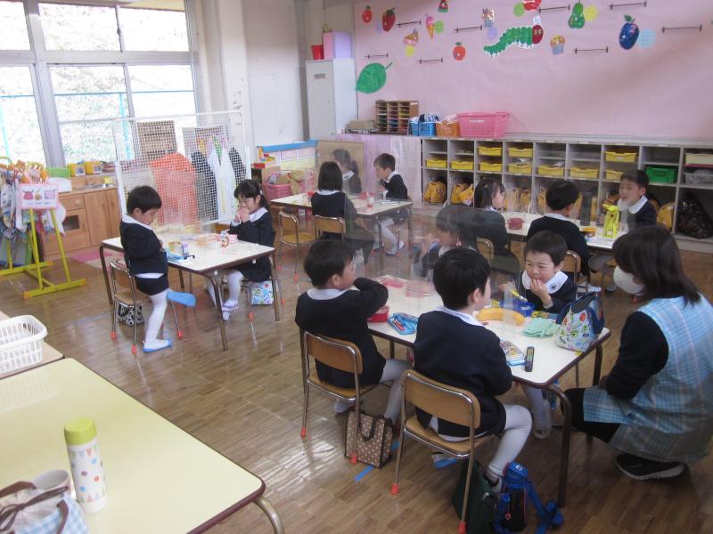 年中組はクラスとしてはきりん組の1クラスですが、お昼のお弁当や給食はきりん組と元うさぎ組の2つの教室に分かれて食べます。