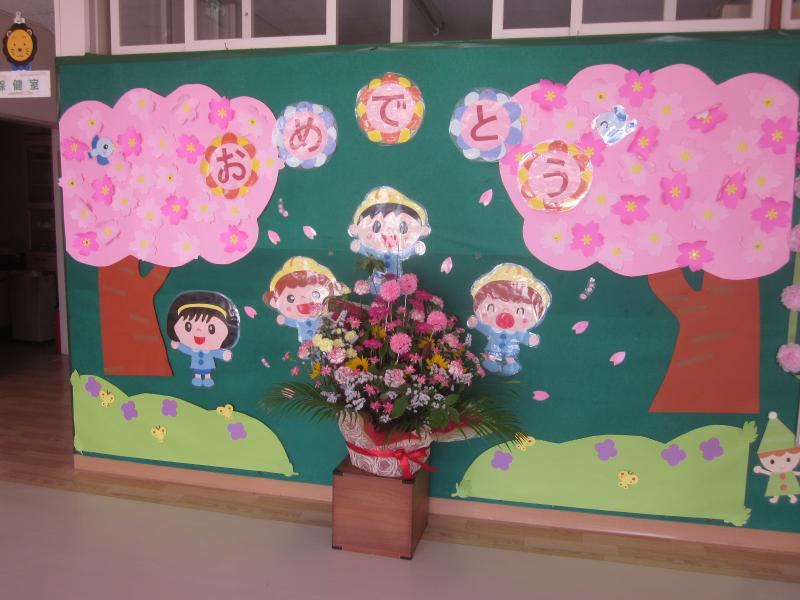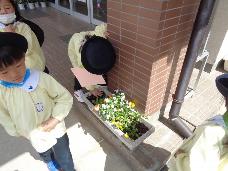 (入園した新しいお友達を歓迎する花々)