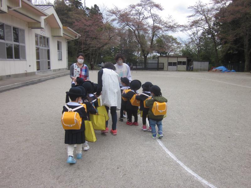 今日は、年少組の子どもたちが並んで降園する今日の様子を掲載しました。