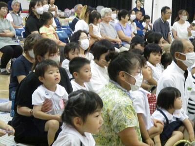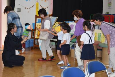 1時間弱の人形劇でしたが、子どもたちも劇に集中して、おじいさんやおばあさんと一緒に楽しんでいました。