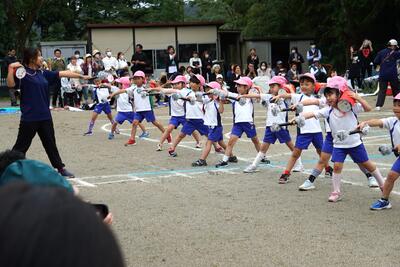 後半の部に入り徐々に雨が上がり、念願の年長親子団体を実施することができました。