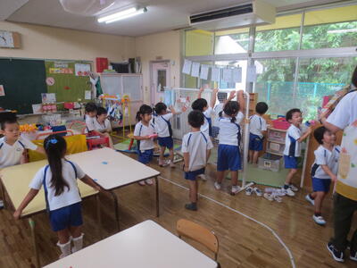 午前は、年少組から年長組までの好きな遊びの通常保育やクラス活動等を参観いただきました。