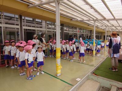 の指示放送を受け、全クラス担任の誘導で、実に静かに整然と避難することができました。