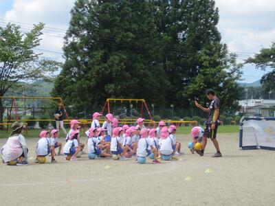 本日、年中組と年長組で今年度3回目のサッカー教室を行いました。