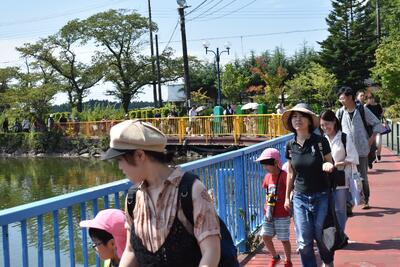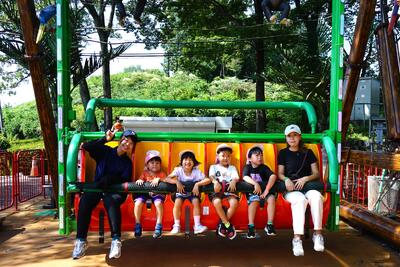 今年度の親子バス旅行の行先は「那須りんどう湖ファミリー牧場」。大型バス5台で向かいました。