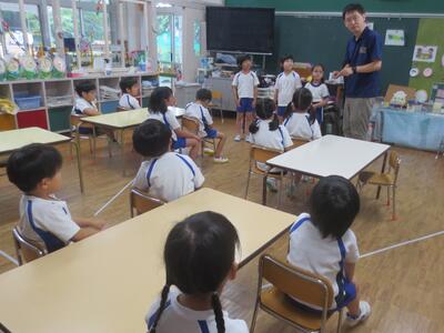 初めての英語教室なので、30分という短い時間でしたが、英語に親しむ最初の時間として、先生に注目して一生懸命発音をまねる子どもたちがとてもすてきでした。