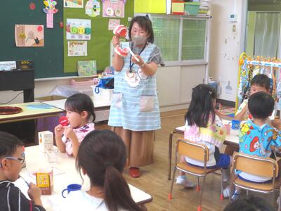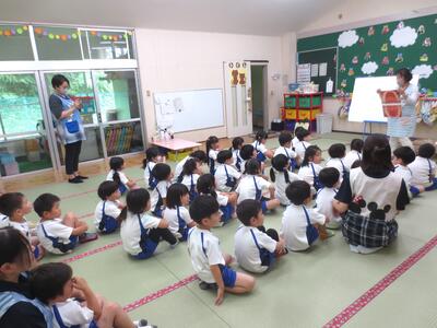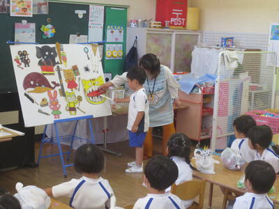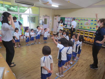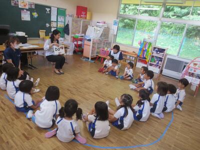 2024年6月21日 13時07分本日、年少組で初めての英語教室を行いました。