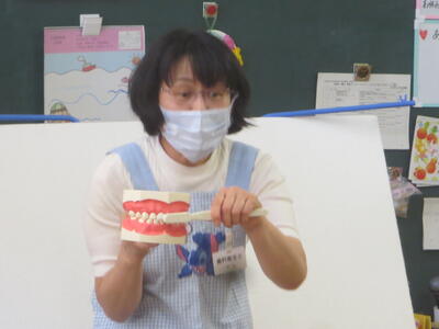 どの学年も、前半は歯磨きの大切さを教えていただき、後半は実際によい歯磨きの仕方を実際に歯磨きをしながら教えていただきました。