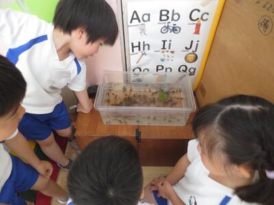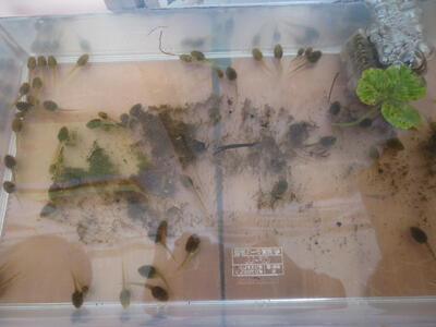 田んぼからのオタマジャクシが~、草むらの幼虫が~~。
