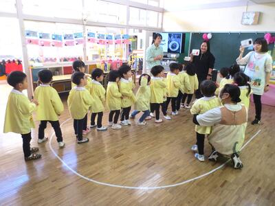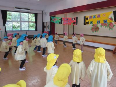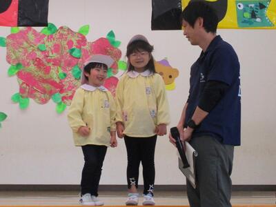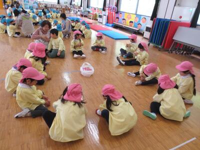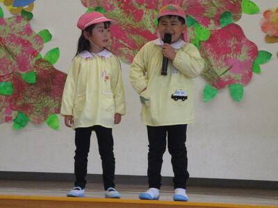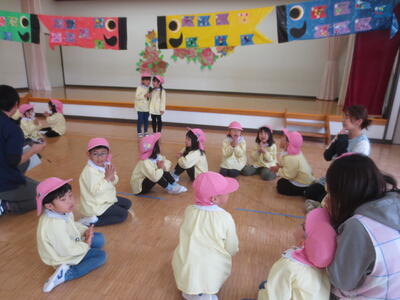 さて、この日全園児で新入園児を歓迎する会を行いました。