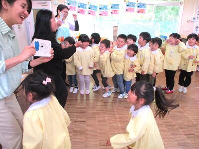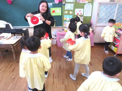 本日、今年度の英語教室としては2回目ですが、年中組としては第1回目となる英語教室を行いました。