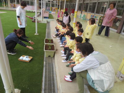 連休明けの7日。年少組でも栽培活動がスタートしました。