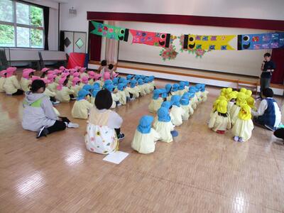 「園の駐車場も車があるので、そこでは遊ばない(駐車場は遊び場ではありません)」「幼稚園に登降園してくるときには、お家の人と必ず手をつないで、安全を確保しながら歩く」等々も確認しました。