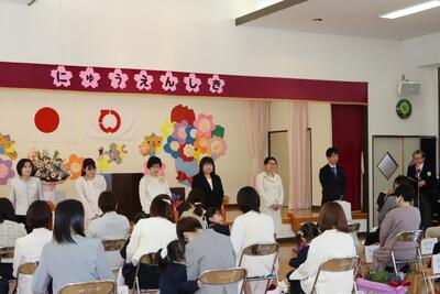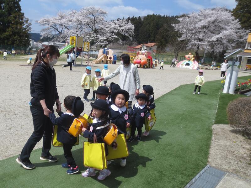この日の天候は快晴。園庭の桜もほぼ満開の最高の入園式日和となりました。
