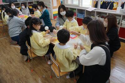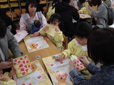 【年少組】月刊誌のシール貼りとこいのぼり制作