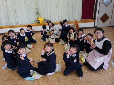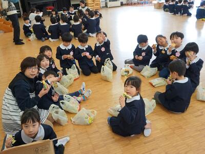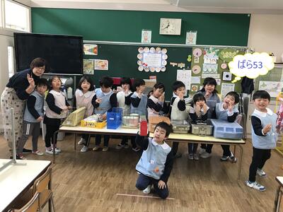 そのあとの給食で、年長ゆり組とばら組がそろって「お残しなし」となりました。