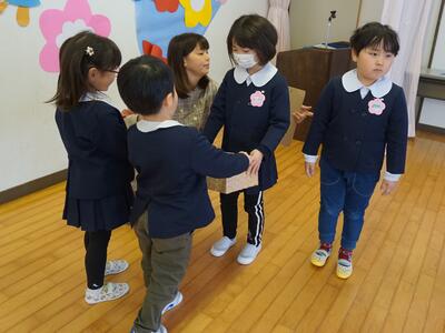 今日は、年長組さんへのありがとうの気持ちをみんなで、「お別れ会」を開催。