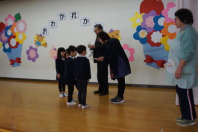 「今までありがとうございました」「小学校へ行っても頑張ってください」