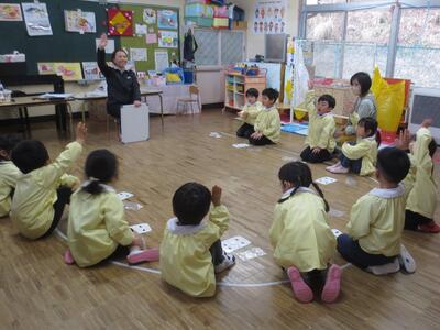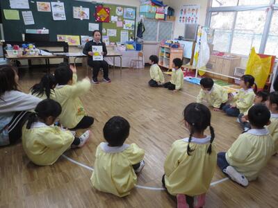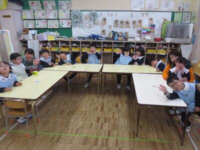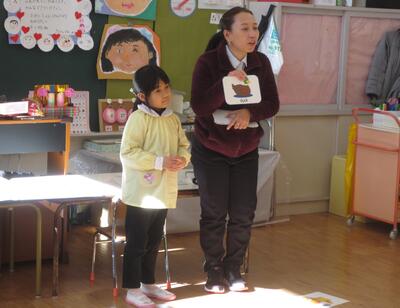 前回、前々回と間が空いてしまいましたが、子どもたちはすぐに思い出し、20種類の動物の英語表現を楽しんでいました。天栄幼稚園で3年間英語教室を楽しみましたが、小学校に行ってからも大いに楽しんでほしいと思います。