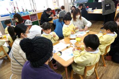 はじめに別室でR6PTA役員選出を行った後、各クラスで親子で「ひなにんぎょう」を制作しました。