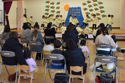 オープニングは、年長クラス全員による歓迎のダンス「ラーメン体操」を披露しました。