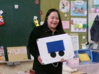 その後、先生から一人2~3枚の形をランダムに配られ、先生が示した図柄に合わせるパズルも行いました。