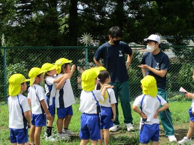 幼稚園教諭の仕事を学ぶ立場での訪問なので、はじめは緊張感を持ちながら参観していましたが、すぐに子どもたちと一緒に自然な姿で活動していました。