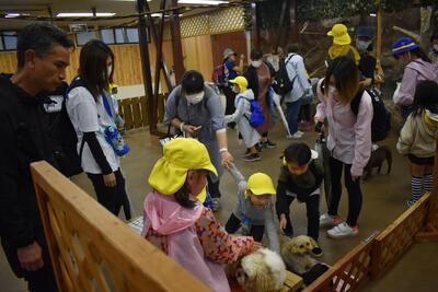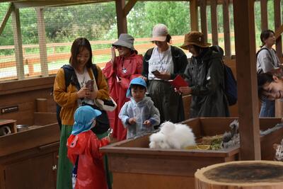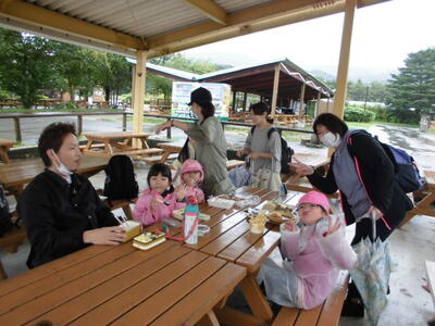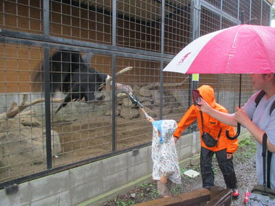 台風の影響で雨が心配され、那須どうぶつ王国では傘を差しながらの移動もありましたが、日よけ雨除け通路等の設備もあり比較的大きな支障もなくたくさんの動物をクラス単位で、親子で、友達家族と一緒に、たくさんの動物を見ることができました。雨がやんだり弱まったりの時もあり。お弁当は屋根のある見晴らしの良い場所で食べたり施設内の休憩スペースを利用したりして食べました。