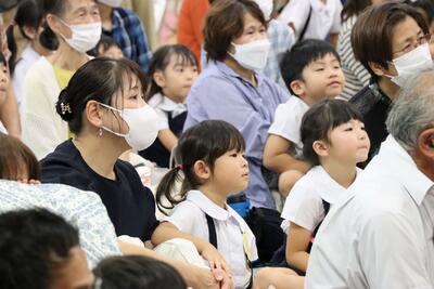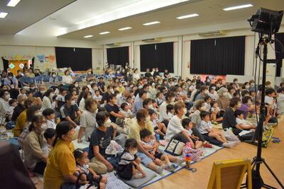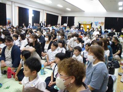 子どもたちは、参加されたおじいちゃんやおばあちゃんのそばで一緒に劇を見ました。