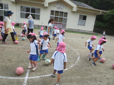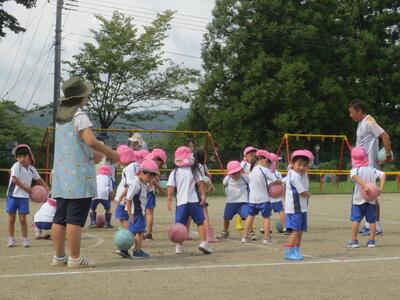 前半は年中組。ボールを使って体を動かす運動が中心でした。