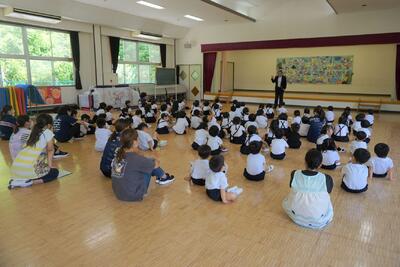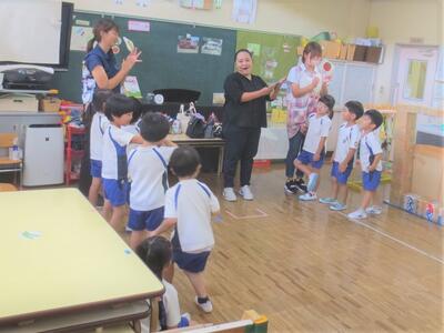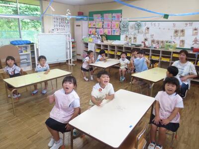 2023年8月28日 11時57分本日、2学期最初の英語教室を年中組で行いました。