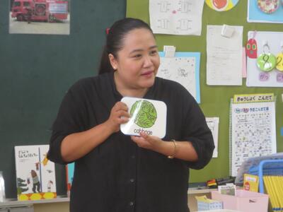 前回が7月10日だったので、2か月のブランクはありましたが、子どもたちは前回を思い出しながら野菜の英語表現をしていました。