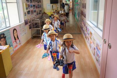 天栄幼稚園の子どもたちは、のびの~び元気です。
