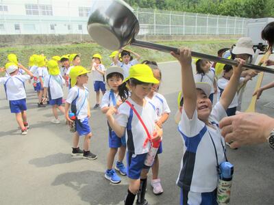 その後、法被を羽織った年長の子どもたちを中心に、常田消防団長さんの面前で、全員で誓いの言葉を言いました。