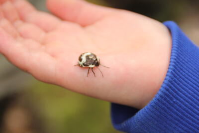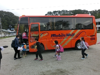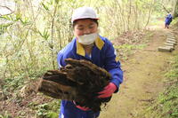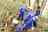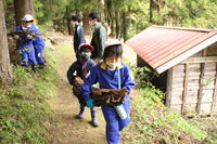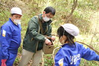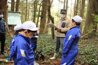 今日の2~3校時にかけて4人の「ゆもとっ子」は、地元の森を探検しました