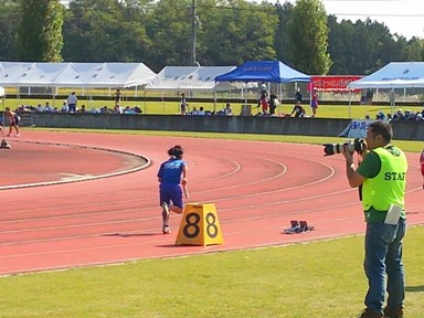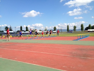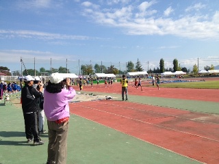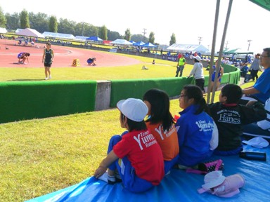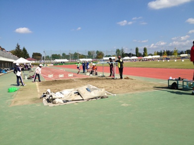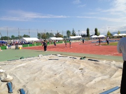 先週より湯本中学校の生徒が走り幅跳びの練習に、本校の砂場へ来ています。