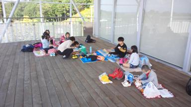 一番目は、幼稚園の園児と先生でした。素早い行動でした。