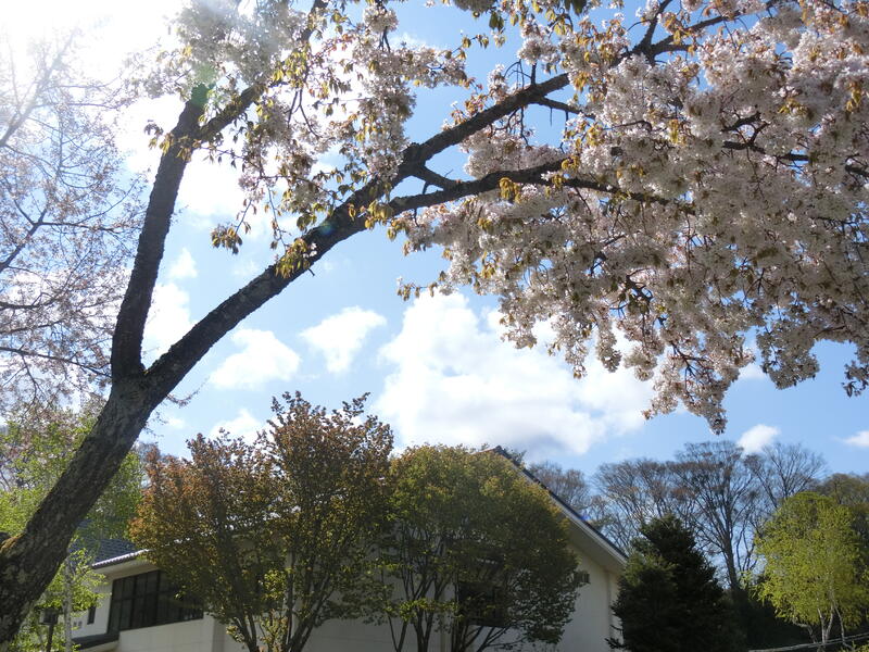 5月になりました。湯本。山桜がまだきれいに咲いていますが,だんだんと葉桜にシフト。
