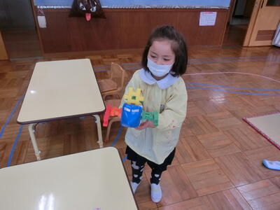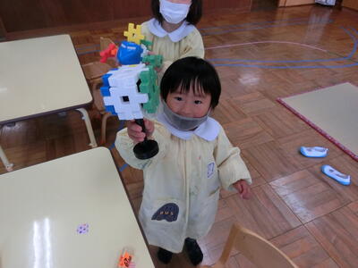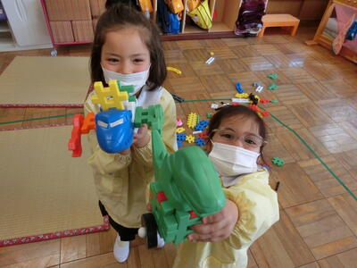 湯本幼稚園の園児は楽しくブロック遊びです。