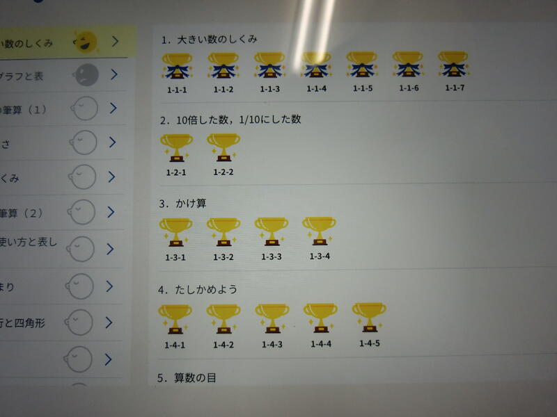 4年生の算数の単元を4つも終了し、かつ1つ目はすべて3回クリアーしました。