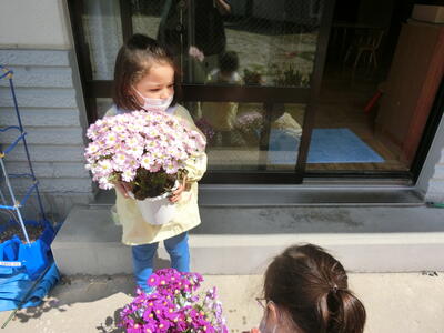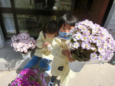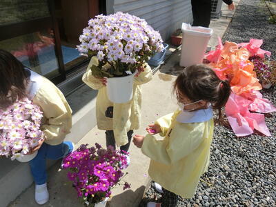 入園式のサイネリア。まだまだ元気。枯れた物もありましたが・・・・