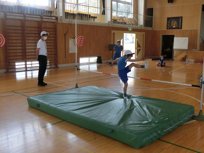 4校時には、体育館で走り高跳びの練習を進めていました。